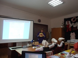 Мета уроку: формувати вміння розпізнавати шви та застосовувати їх для з'єднання деталей аплікації з волокнистих матеріалів, розвивати художній смак, фантазію, навики дотримання правил техніки безпеки. Урок проведено змістовно і цікаво. На уроці були використані методи комп'ютерної технології. На інтерактивній дошці учні побачили цікаві слайди, які допомагали їм у виконанні практичної роботи. З практичною роботою учні справилися вчасно. Кожен учень виготовив декоративну прикрасу для кухні.